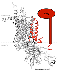 - Dumas L, Zito F, Blangy S, Auroy P, Johnson X, Peltier G, Alric J (2017) A stromal region of cytochrome b6f subunit IV is involved in the activation of the Stt7 kinase in Chlamydomonas PNAS 114:12063-12068.